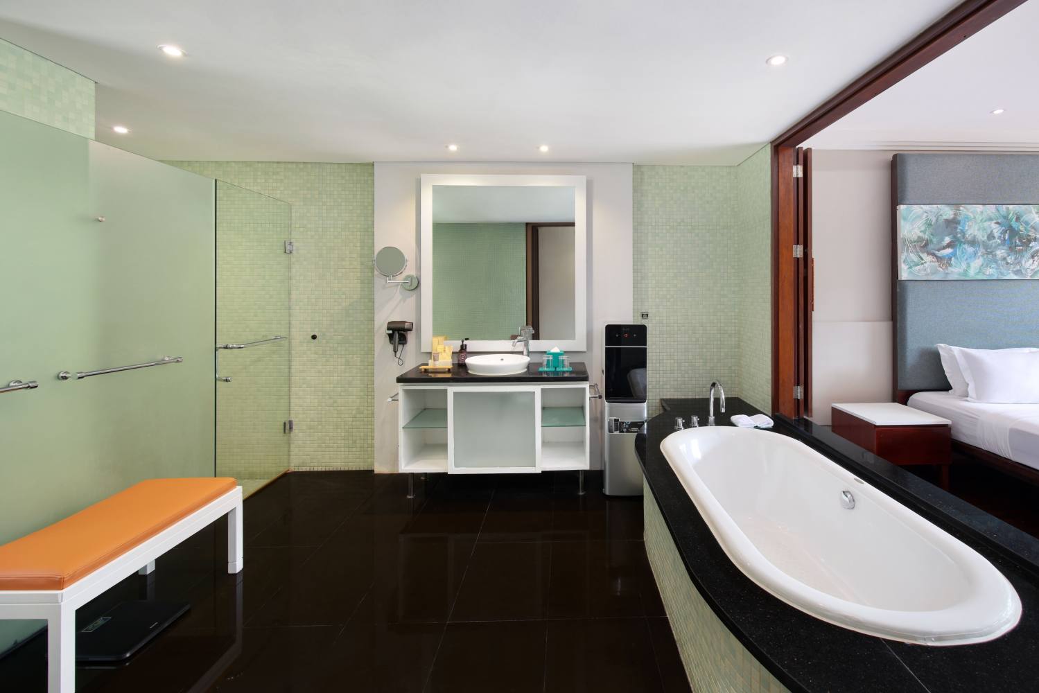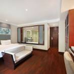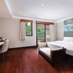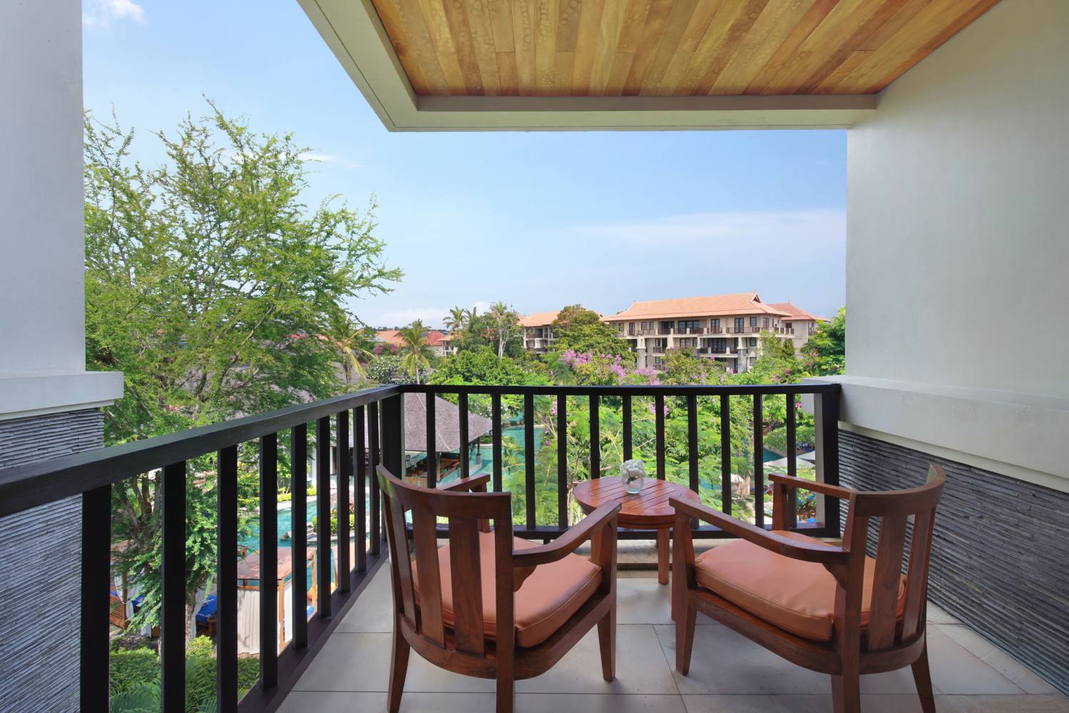 Discover unparalleled comfort and sophistication in our spacious rooms, featuring wooden flooring that adds a touch of elegance to your stay. Immerse yourself in the expansive bathroom, and step onto your private balcony offering a breathtaking view of our lagoon pool—an idyllic retreat for both leisure and business travelers.