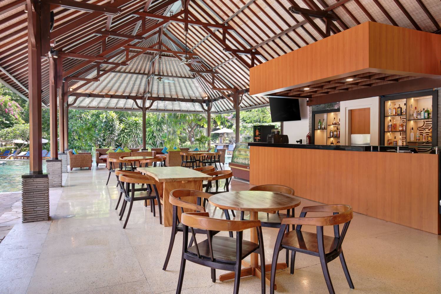 Novotel's latest concept of a casual, friendly eating and drinking space where people can enjoy trendy drinks and eat simple. It would be the best meeting place and a place to sit back and relax. With a new design to provide a relaxed and easy-living atmosphere, GourmetBar by Novotel is ready to welcome you with delicious choices of international classics to the authentic local cuisine (Indonesian, Western, tapas, cocktails). Free Wi-Fi available.