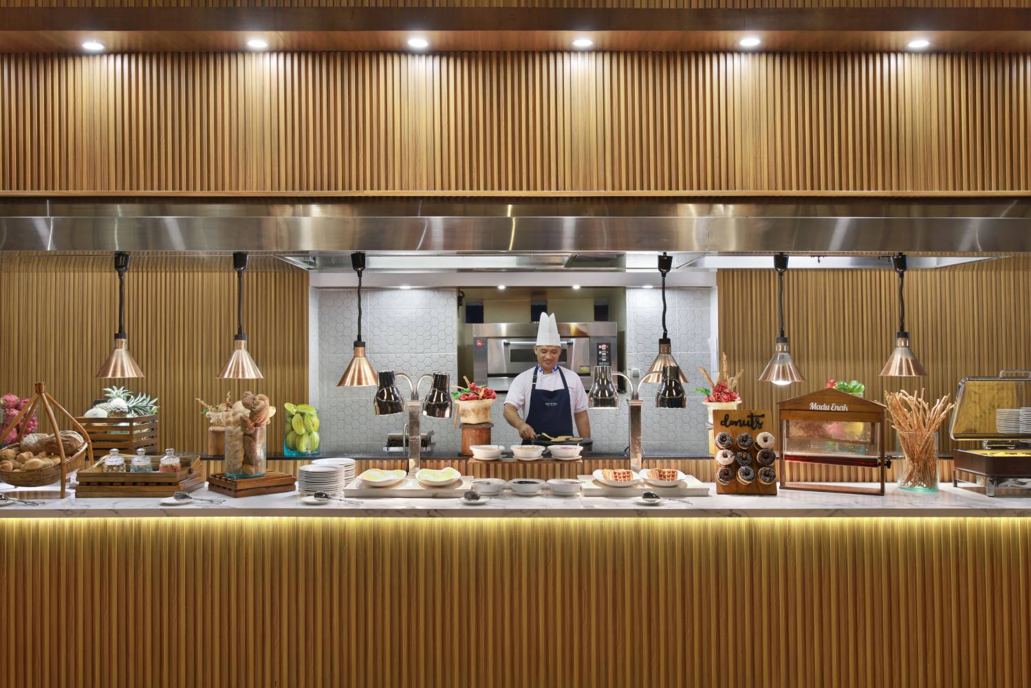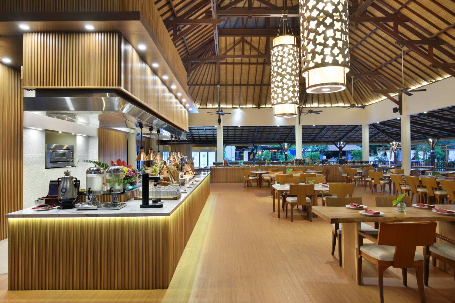 Novotel’s signature all-day dining restaurant, will certainly fulfill your appetites with delectable international (Western & Asian) and local cuisine. Features a refreshing view to our expansive pool lagoon. Its open air and welcoming design offers both indoor and outdoor seating which also can be booked for private function. Dine and relax, this open air restaurant offers the perfect setting for an a la carte or daily theme night dinner. Free Wi-Fi available.